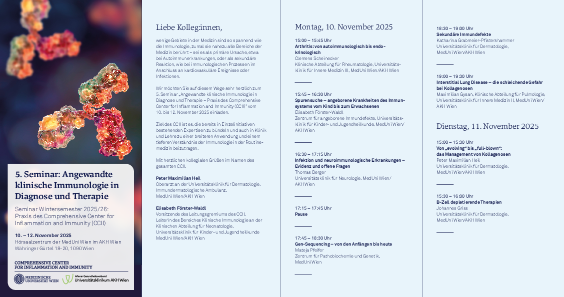 Bereits zum 5. Mal findet das CCII-Seminar: "Angewandte klinische Immunologie in Diagnose und Therapie" statt.